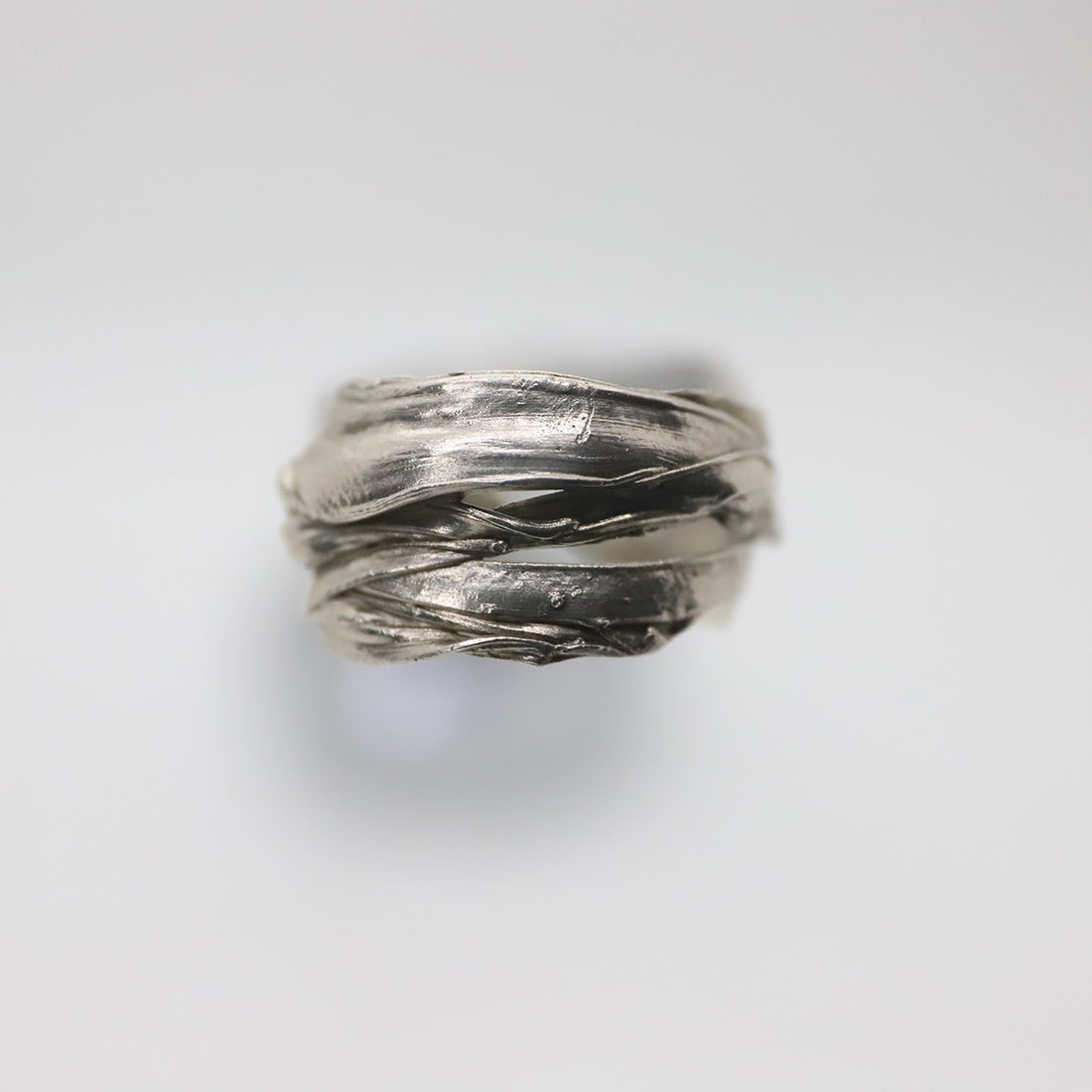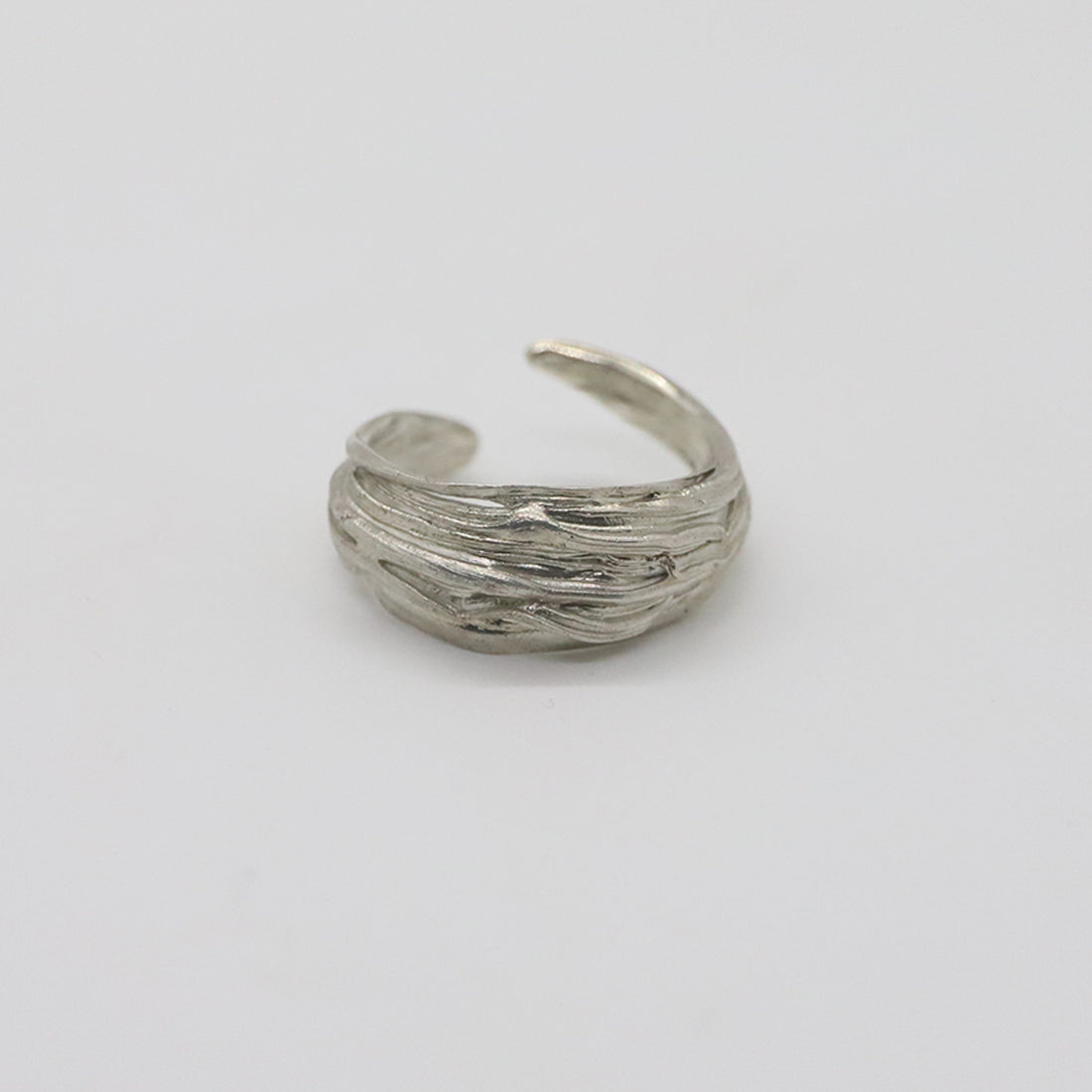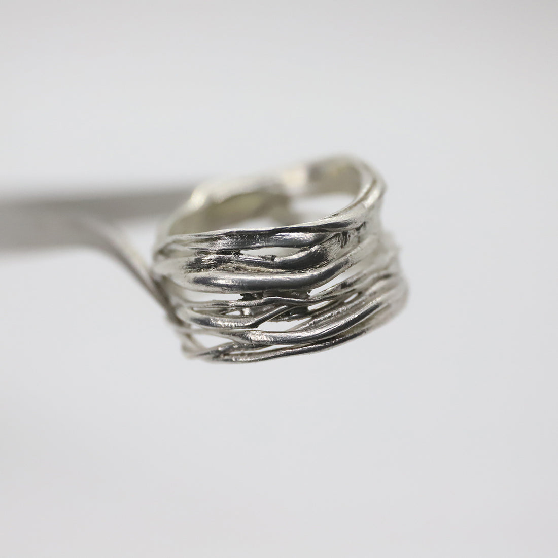 DESCRIPTION Soft Armor wraps the finger in layered bands of silver — textured like woven...