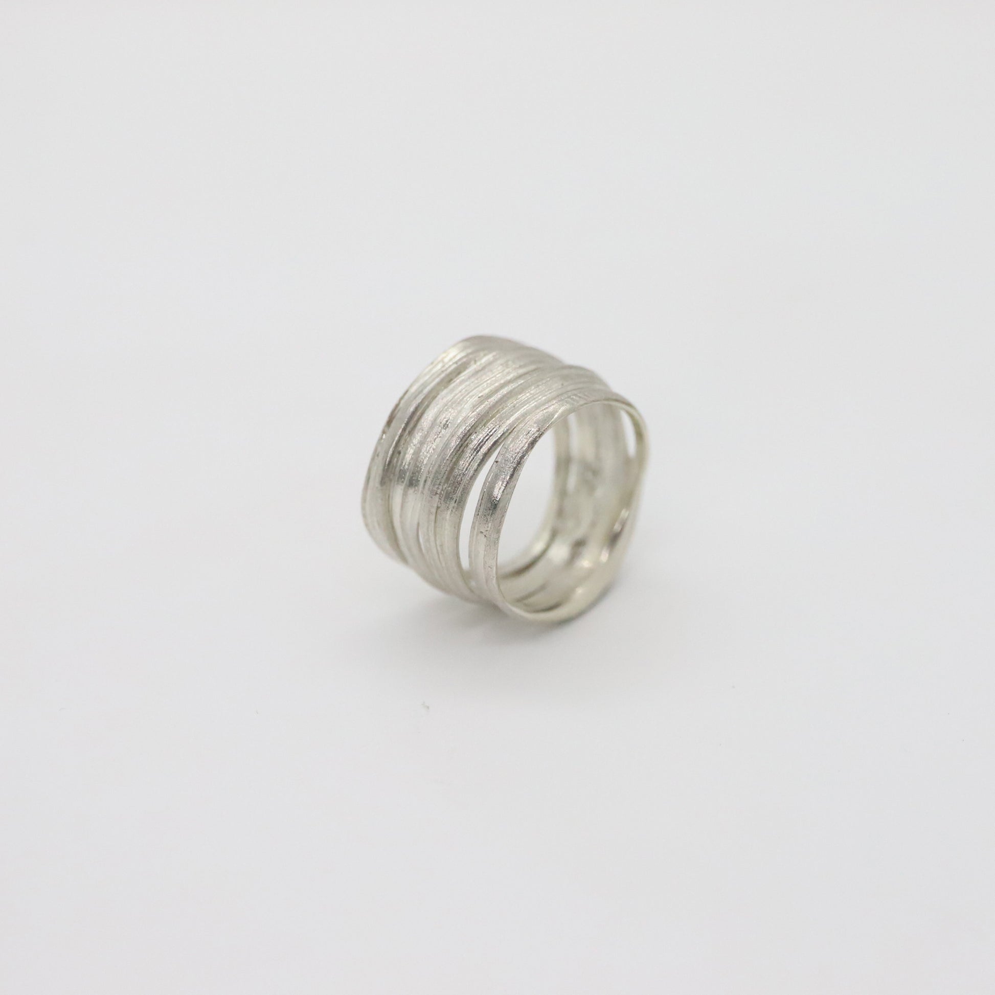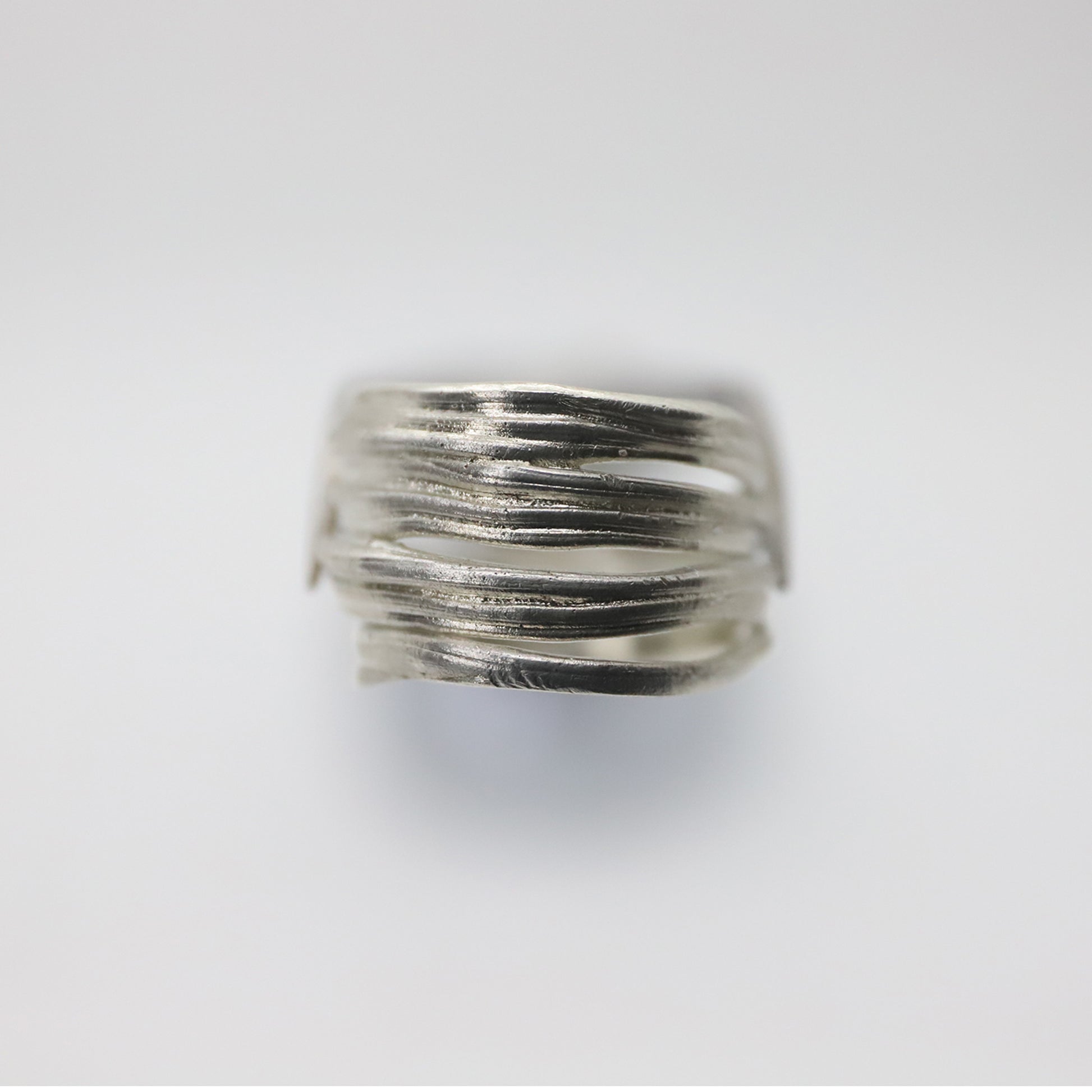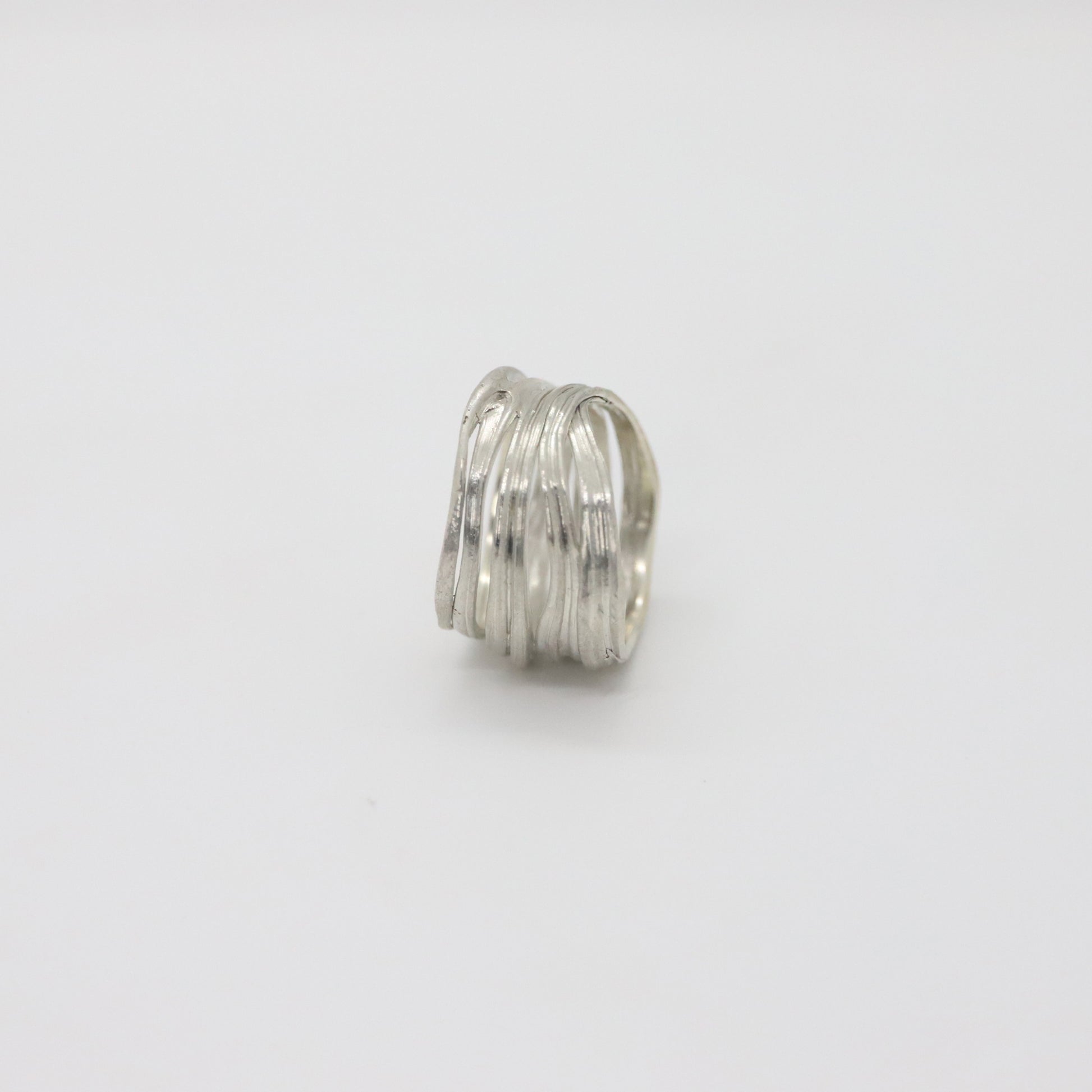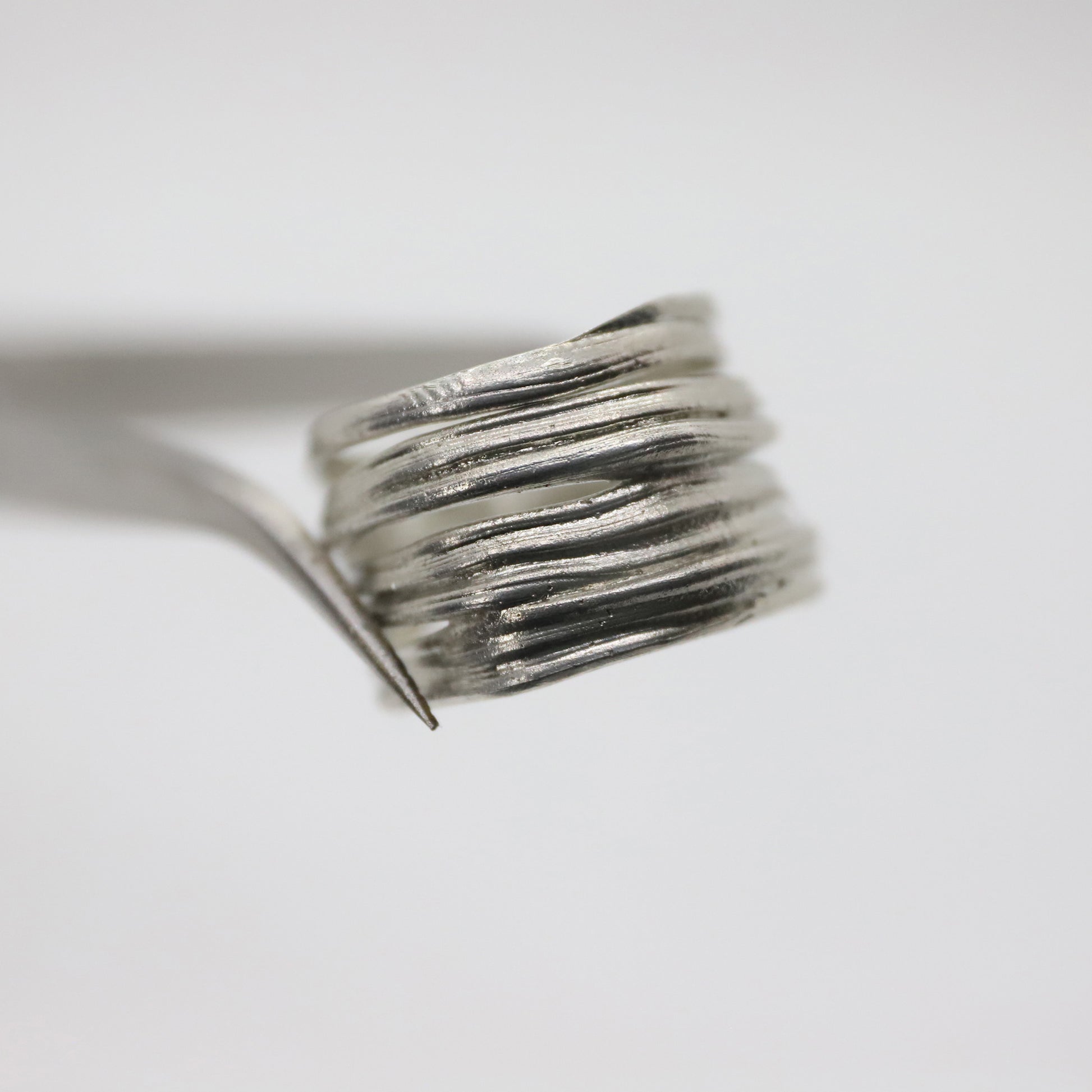 Chaos, stilled mid-spin. The Stillstorm Ring captures the frozen momentum of spiraling silver winds, echoing Jupiter’s endless storms.